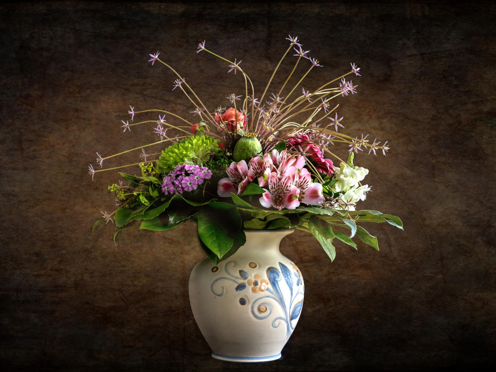Обои Милый букет в красивой вазе на фоне стены