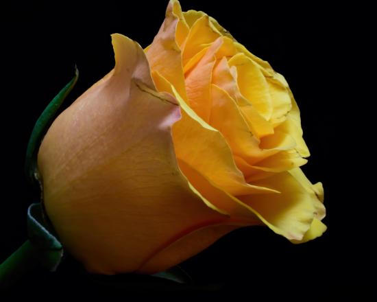 Обои Оранжевый цветок розы в каплях росы на черном фоне