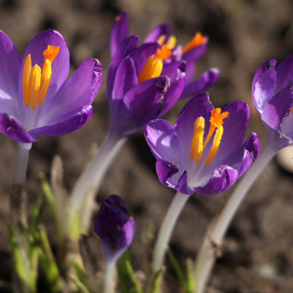 Обои Сиреневые цветы крокуса с желтой серединкой крупным планом