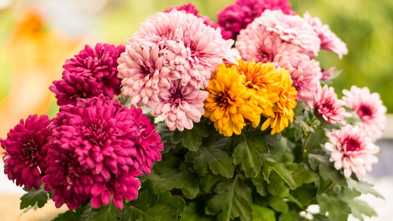 Обои Разноцветные хризантемы крупным планом