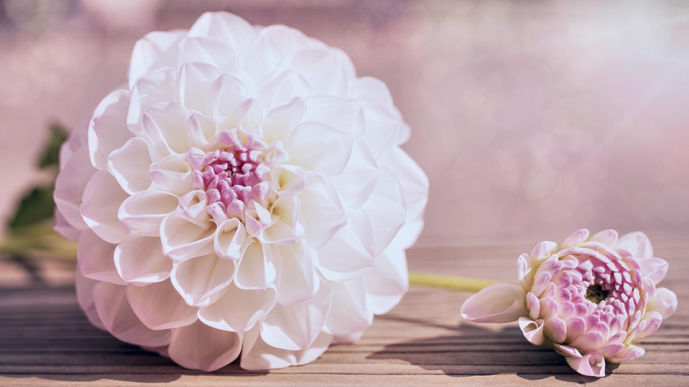 Обои Нежный кремовый цветок георгина на столе