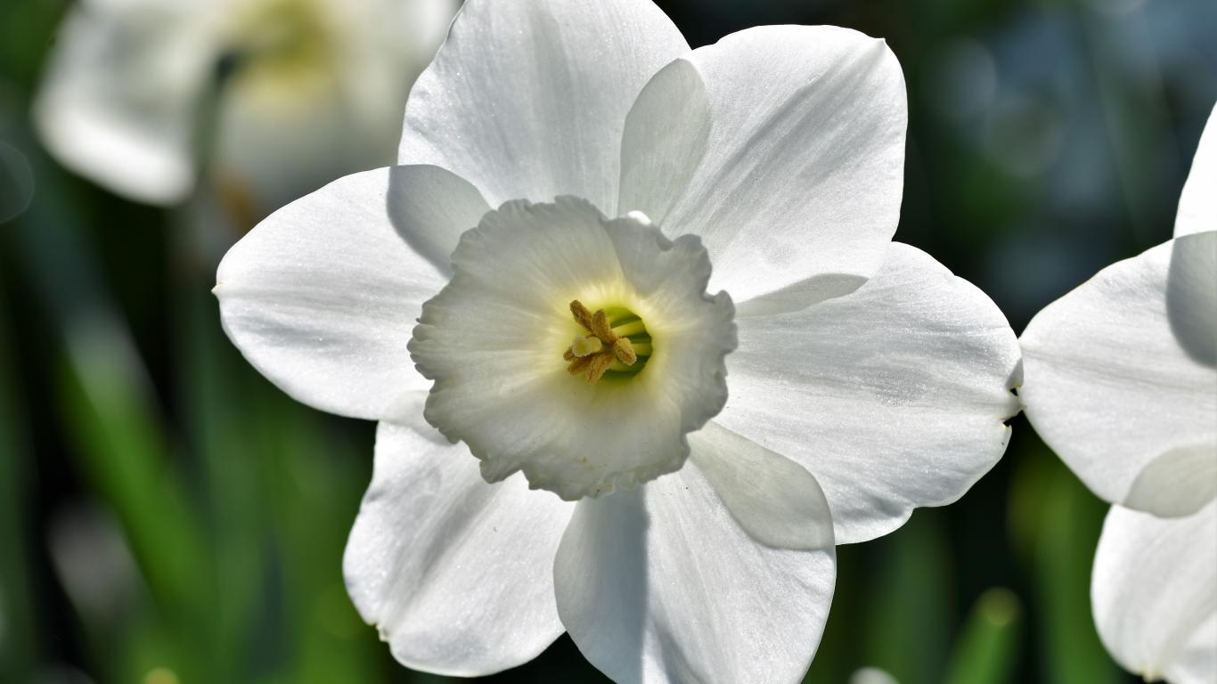 Обои Красивый белый цветок нарцисса крупным планом
