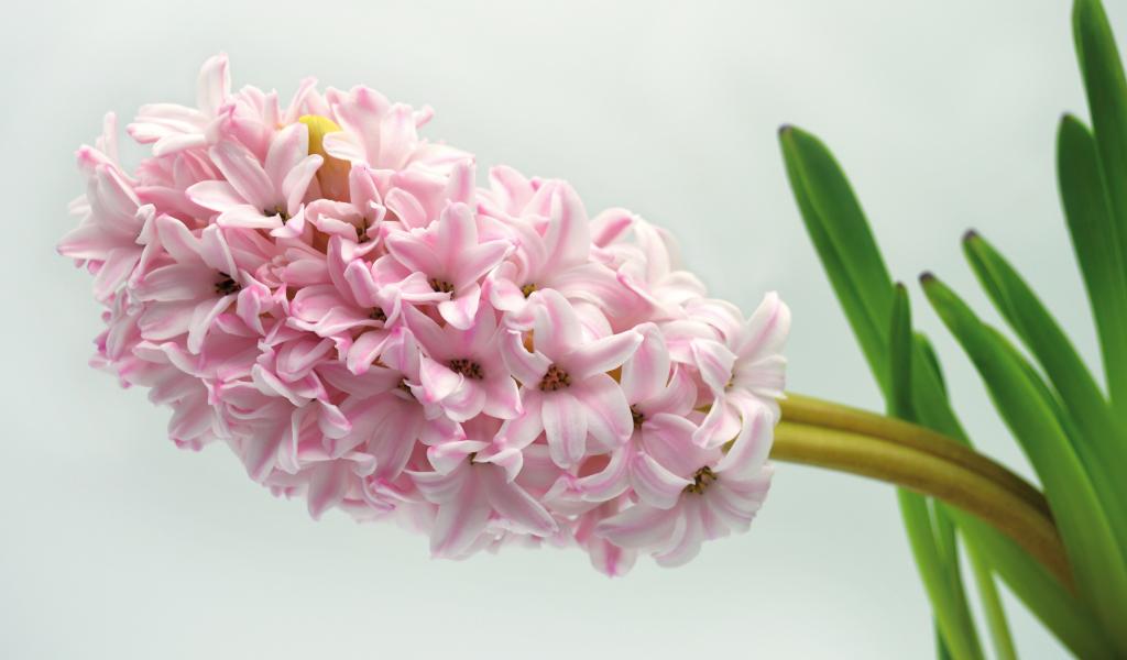 Обои Нежный розовый цветок гиацинта на сером фоне