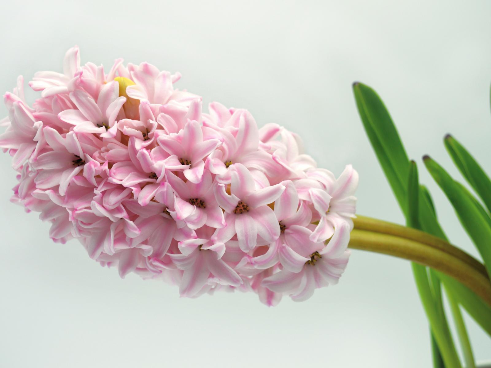 Обои Нежный розовый цветок гиацинта на сером фоне