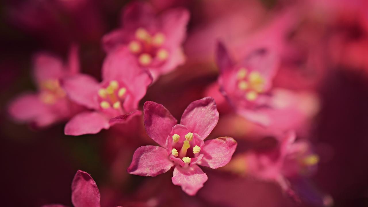 Обои Мелкие сиреневые цветы Обриета в лучах солнца