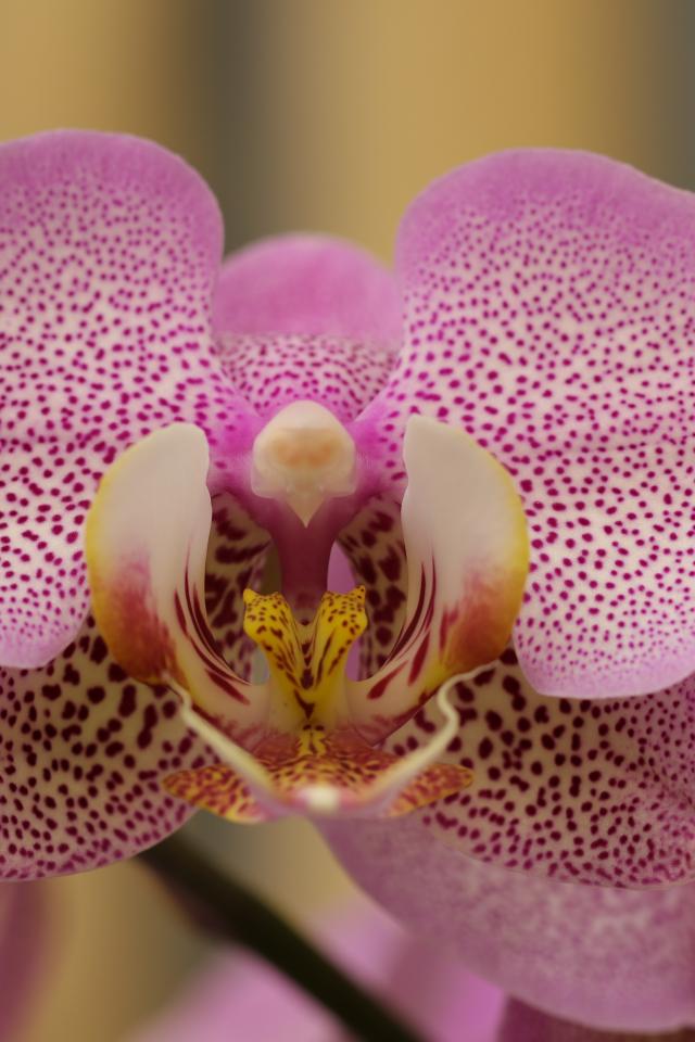 Обои Розовый пятнистый цветок орхидеи крупным планом
