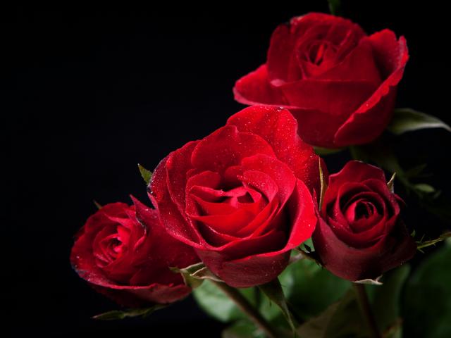 Обои Нежные алые розы на черном фоне