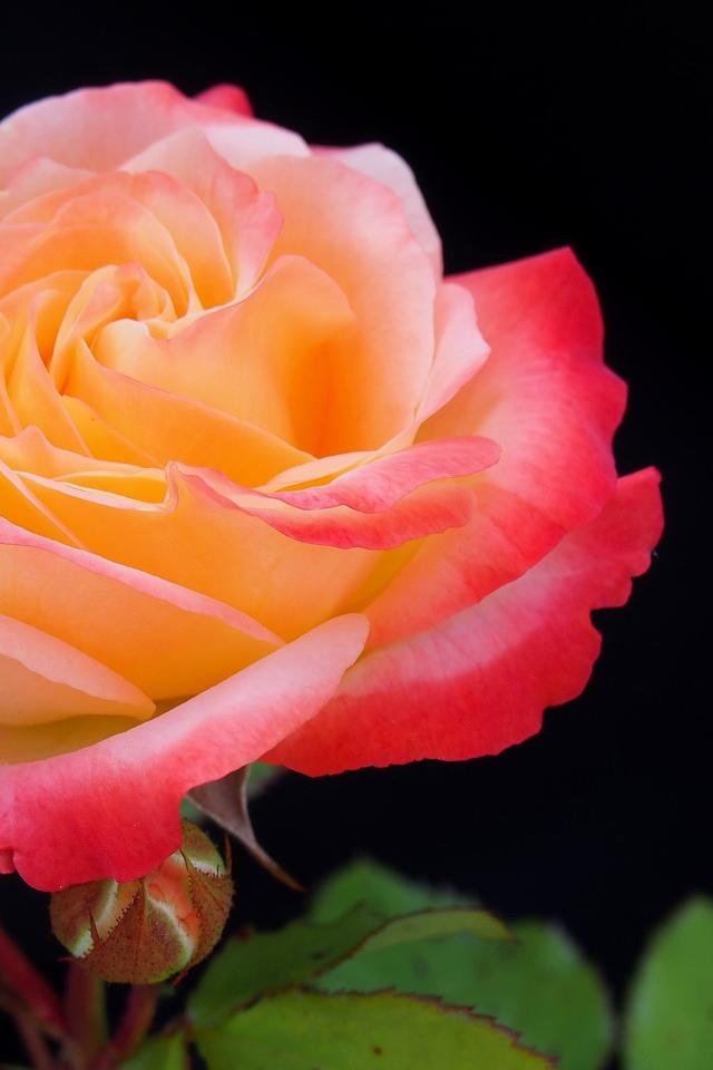 Обои Розовый цветок розы с бутонами на черном фоне