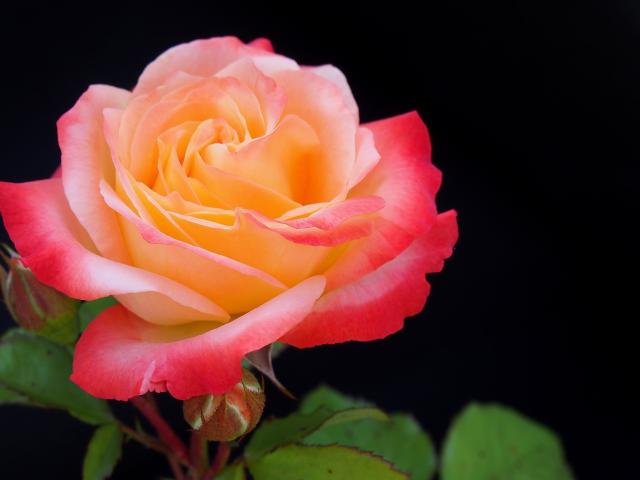 Обои Розовый цветок розы с бутонами на черном фоне