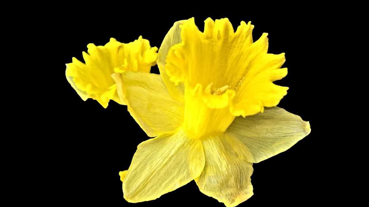 Обои Желтый цветок нарцисса на черном фоне крупным планом