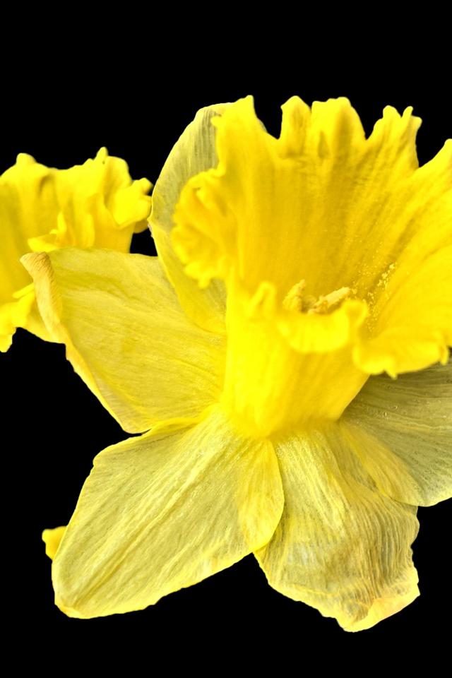 Обои Желтый цветок нарцисса на черном фоне крупным планом