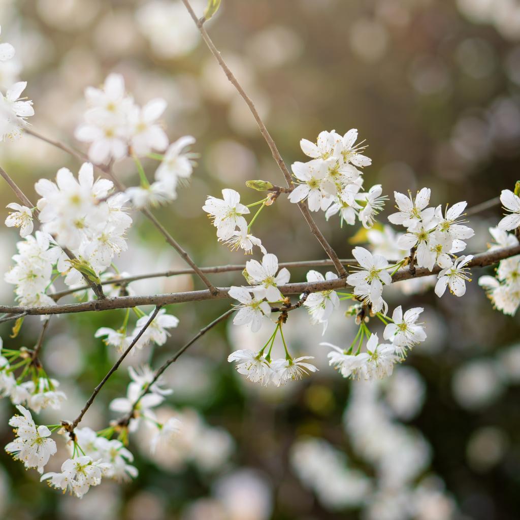Обои Белые цветы вишни на тонкой ветке