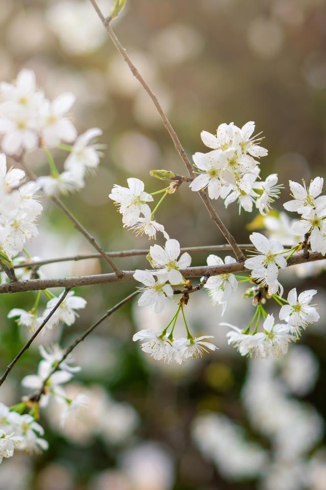 Обои Белые цветы вишни на тонкой ветке