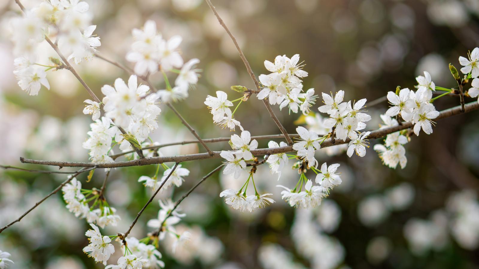 Обои Белые цветы вишни на тонкой ветке