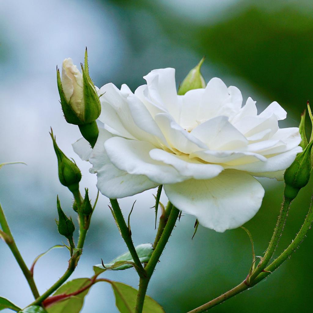 Обои Белый цветок розы с бутонами крупным планом