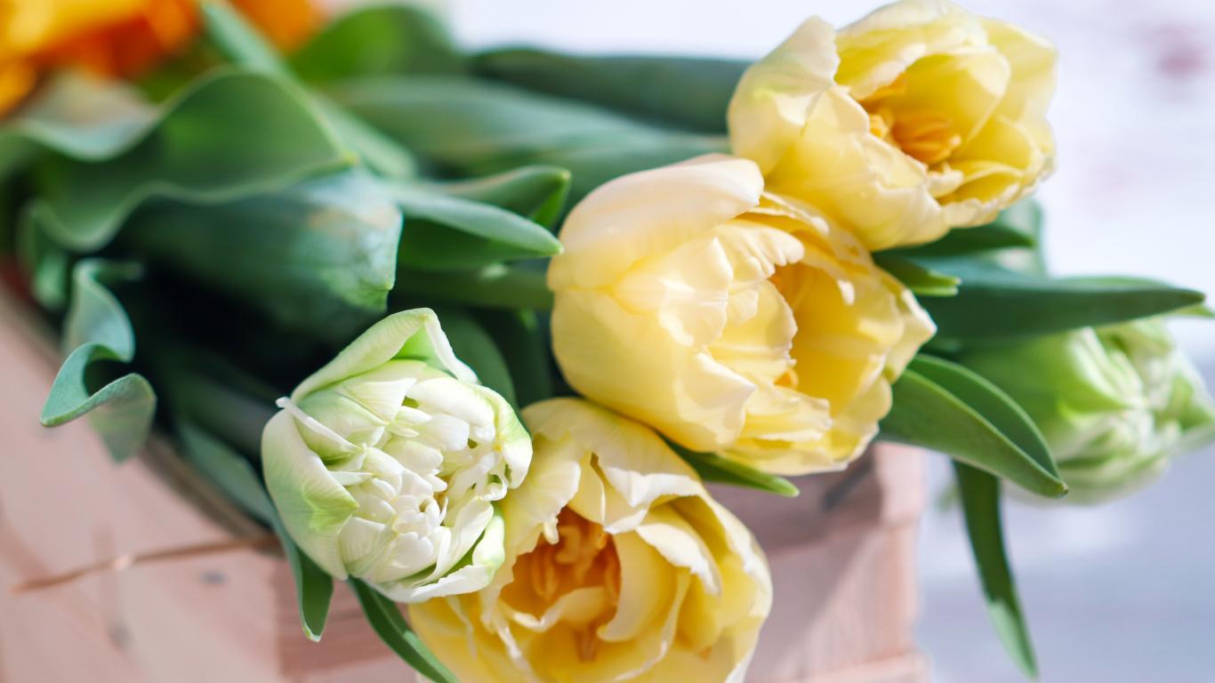Обои Букет нежных кремовых тюльпанов на столе