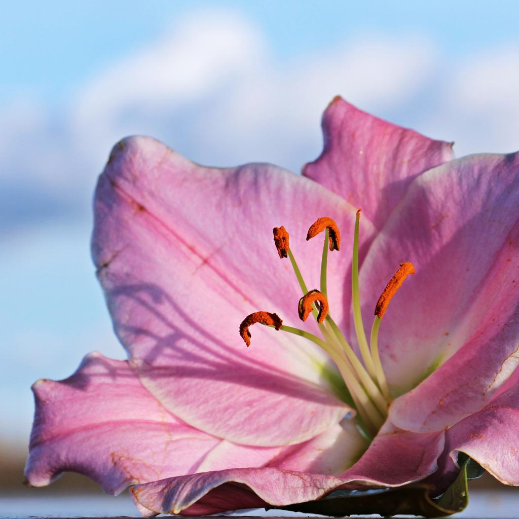 Обои Нежная розовая лилия на фоне неба крупным планом