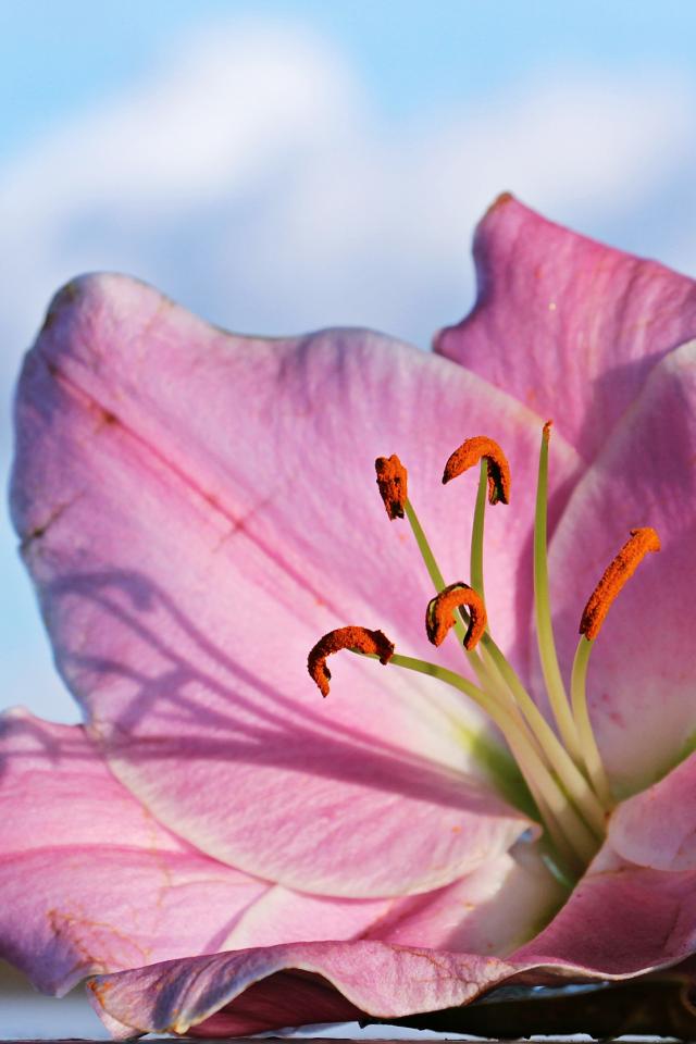 Обои Нежная розовая лилия на фоне неба крупным планом