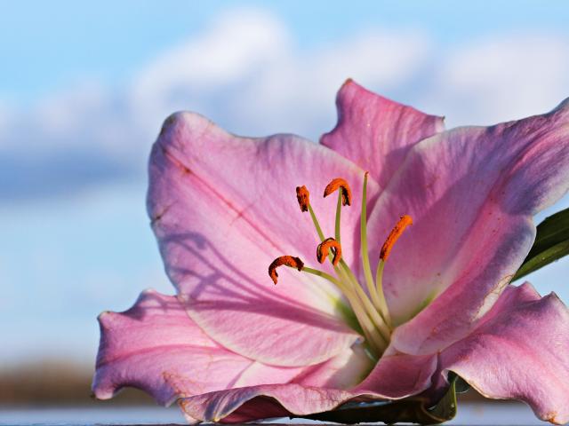Обои Нежная розовая лилия на фоне неба крупным планом