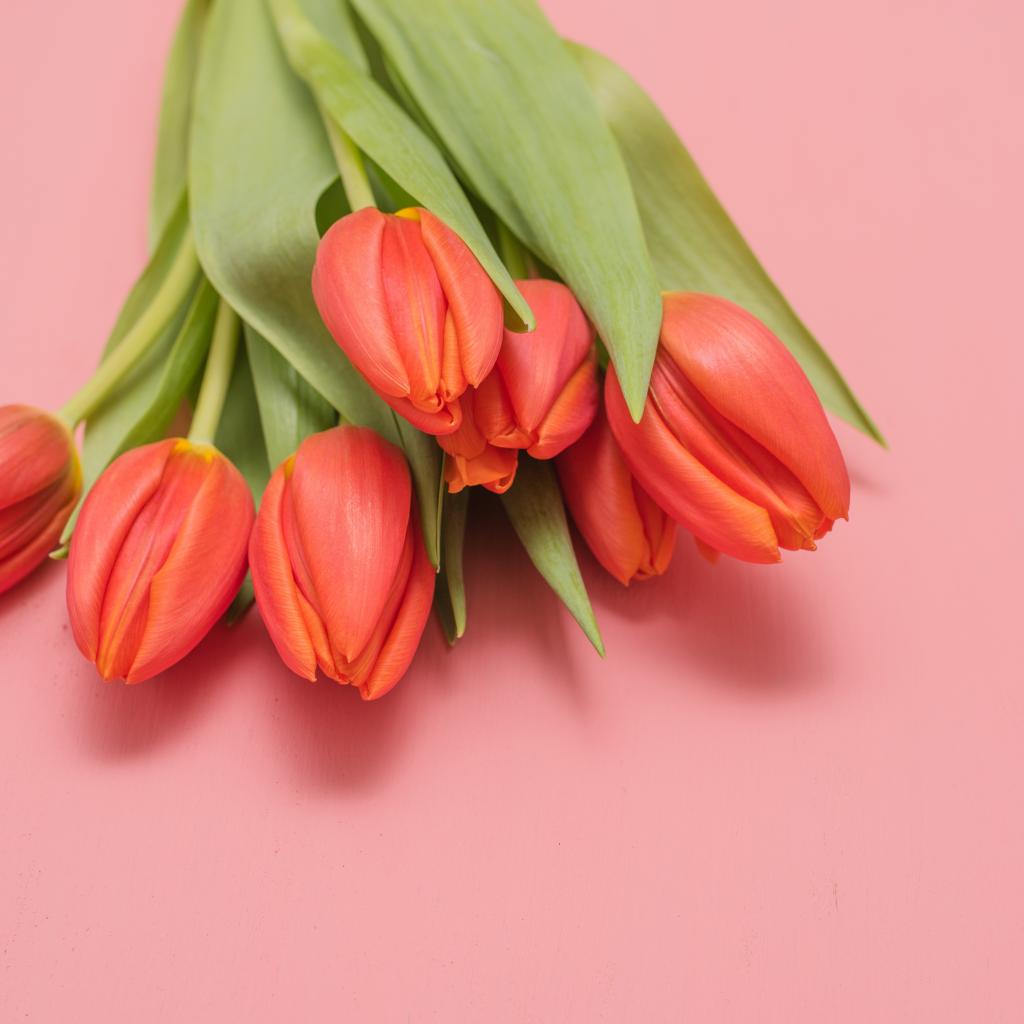 Обои Букет оранжевых тюльпанов на розовом фоне