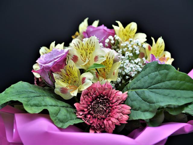 Обои Красочный букет из цветов розы, альстромерии и герберы