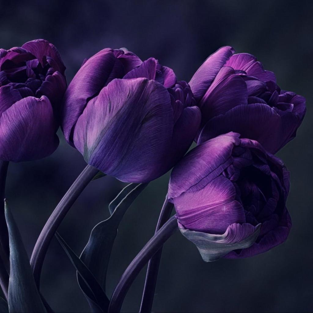 Обои Букет фиолетовых тюльпанов на сером фоне