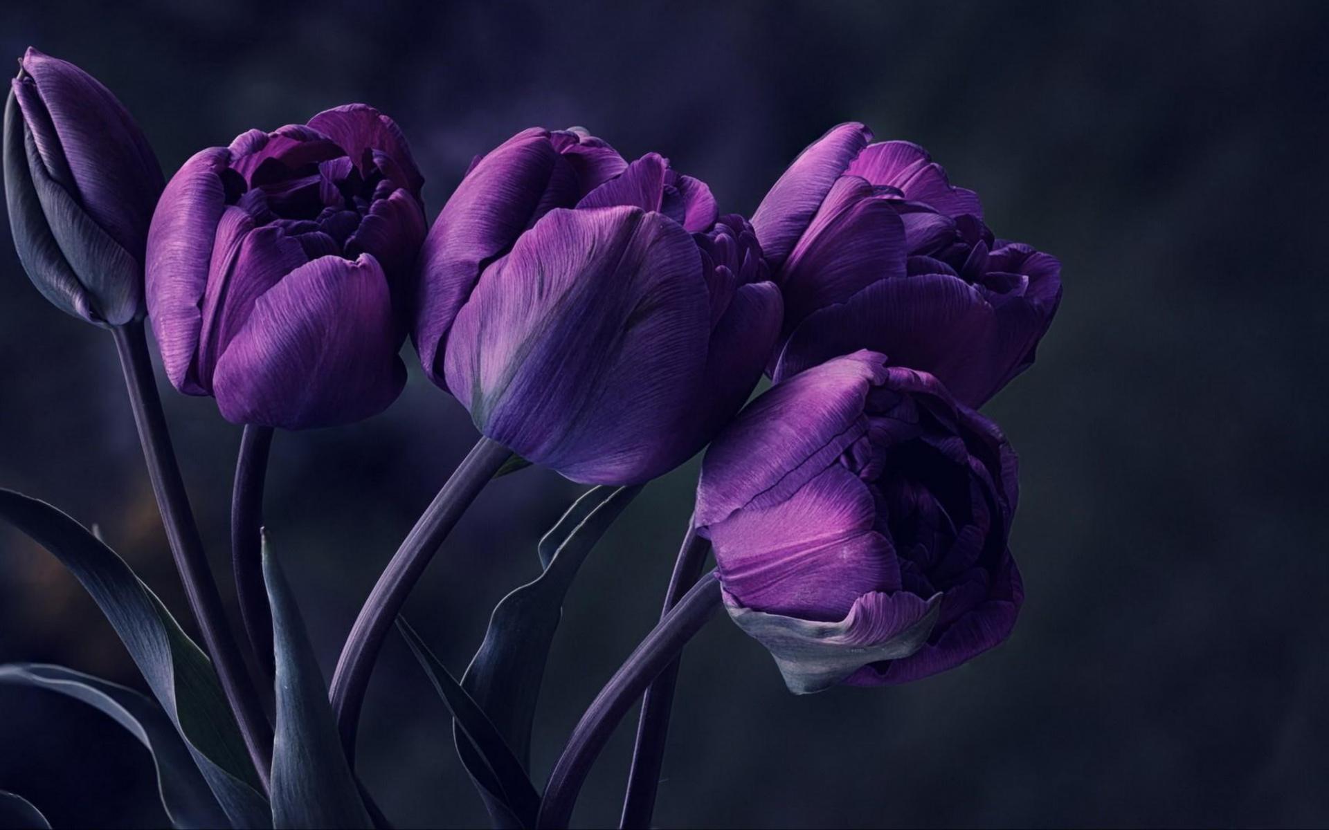 Обои Букет фиолетовых тюльпанов на сером фоне