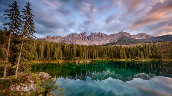 Обои Красивый лесной пейзаж у озера