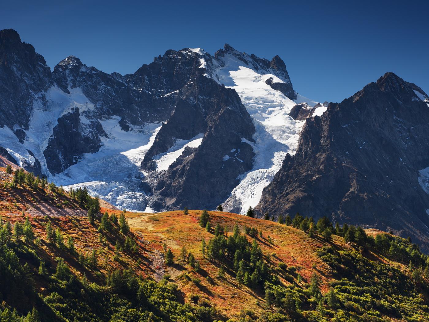 Обои Заснеженные горы на фоне голубого неба