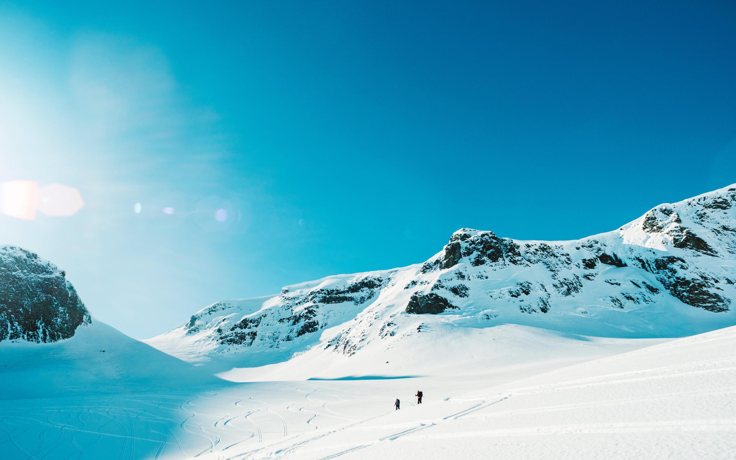 Обои Красивые заснеженные горы под голубым небом в лучах солнца