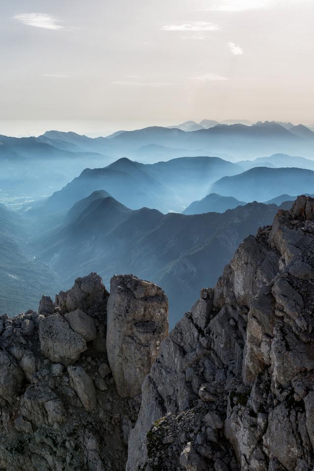 Обои Покрытые утренним туманом скалы