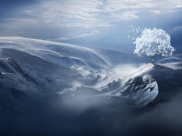 Обои Фантастический горный пейзаж под голубым небом