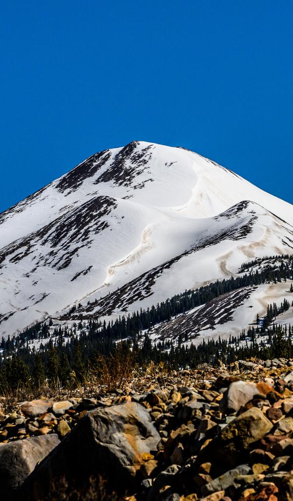 Обои Высокая заснеженная гора под голубым небом
