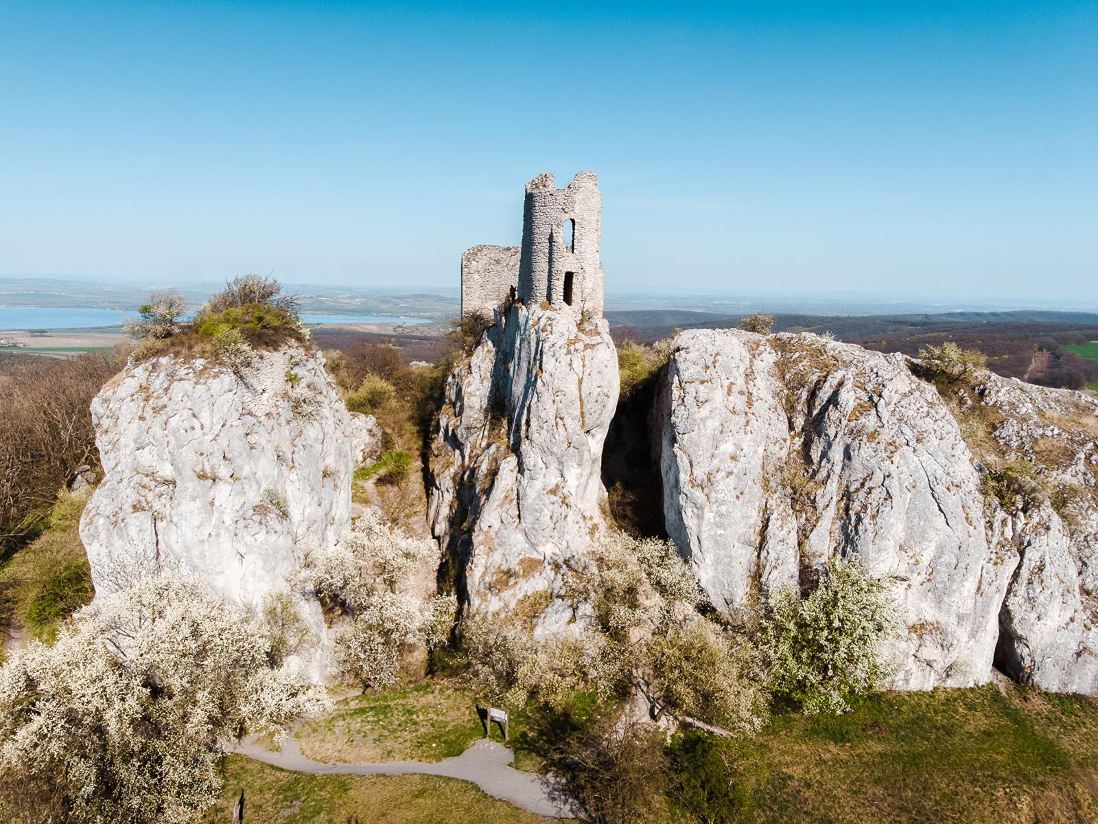 Обои Развалины храма на скале под голубым небом
