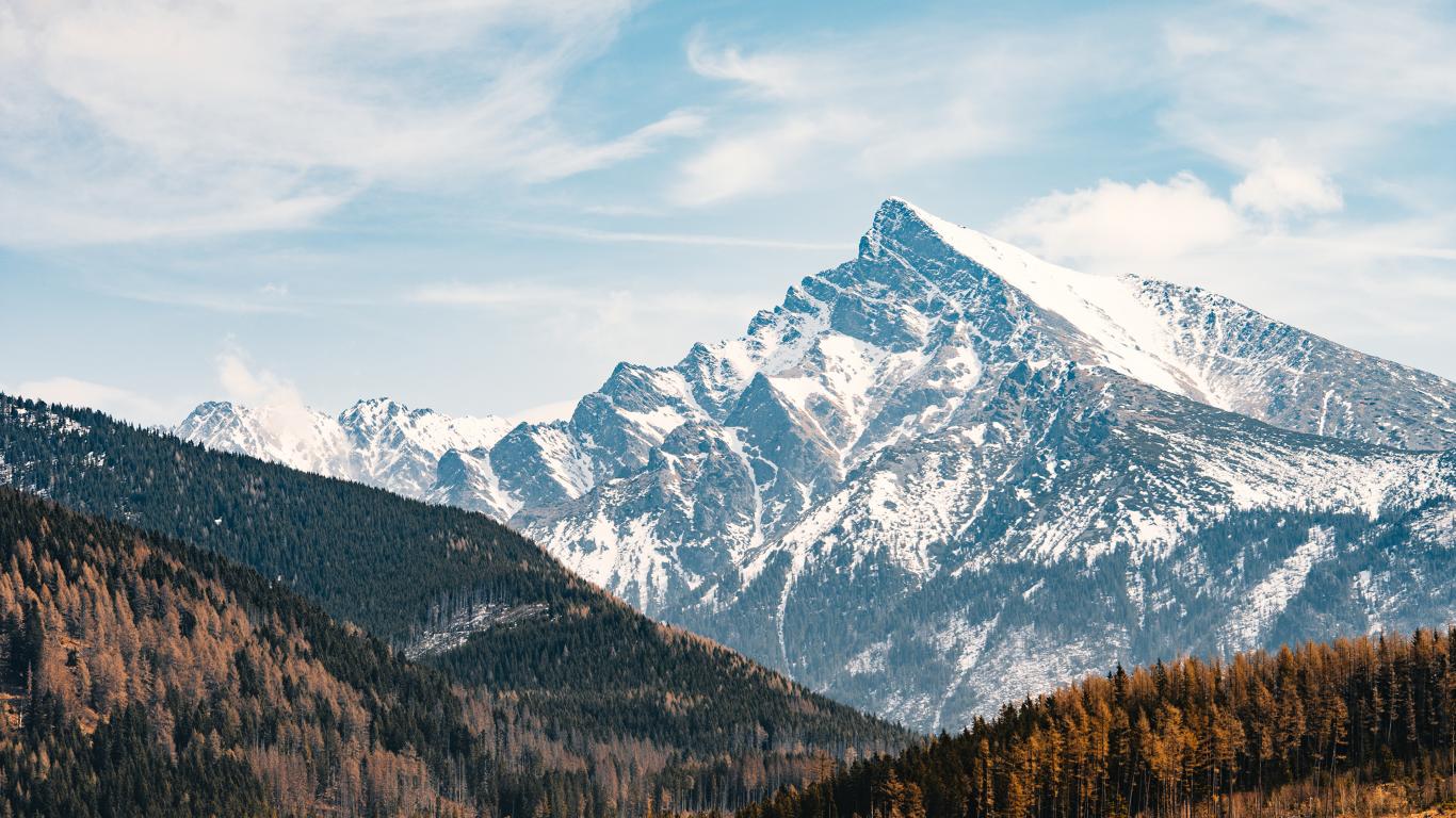 Обои Заснеженная гора под голубым небом, Словакия