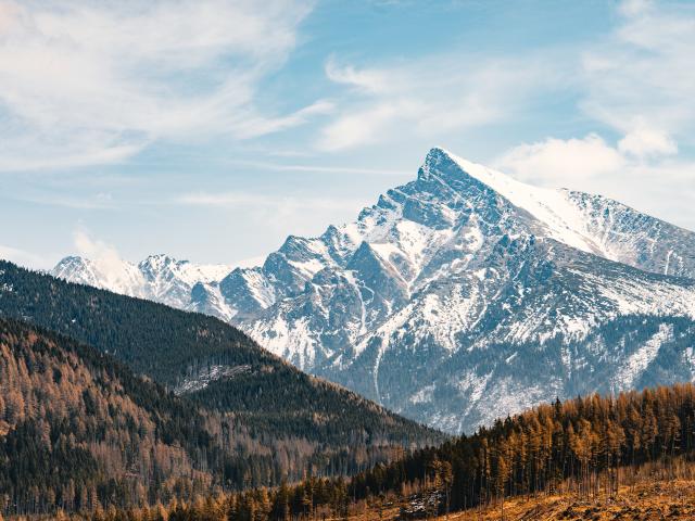 Обои Заснеженная гора под голубым небом, Словакия