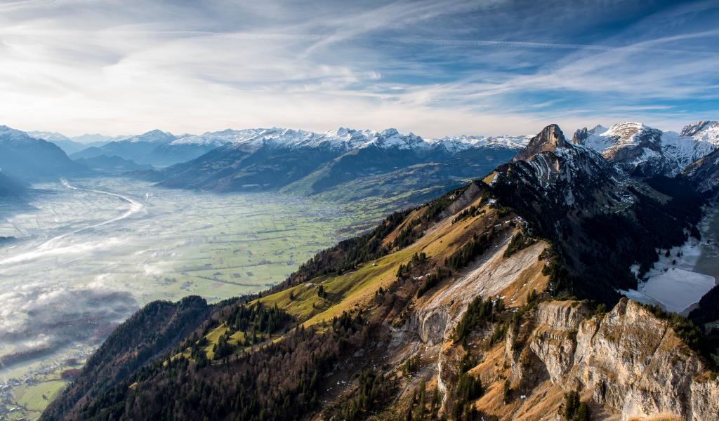 Обои Живописные заснеженные горы год голубым небом, Швейцария