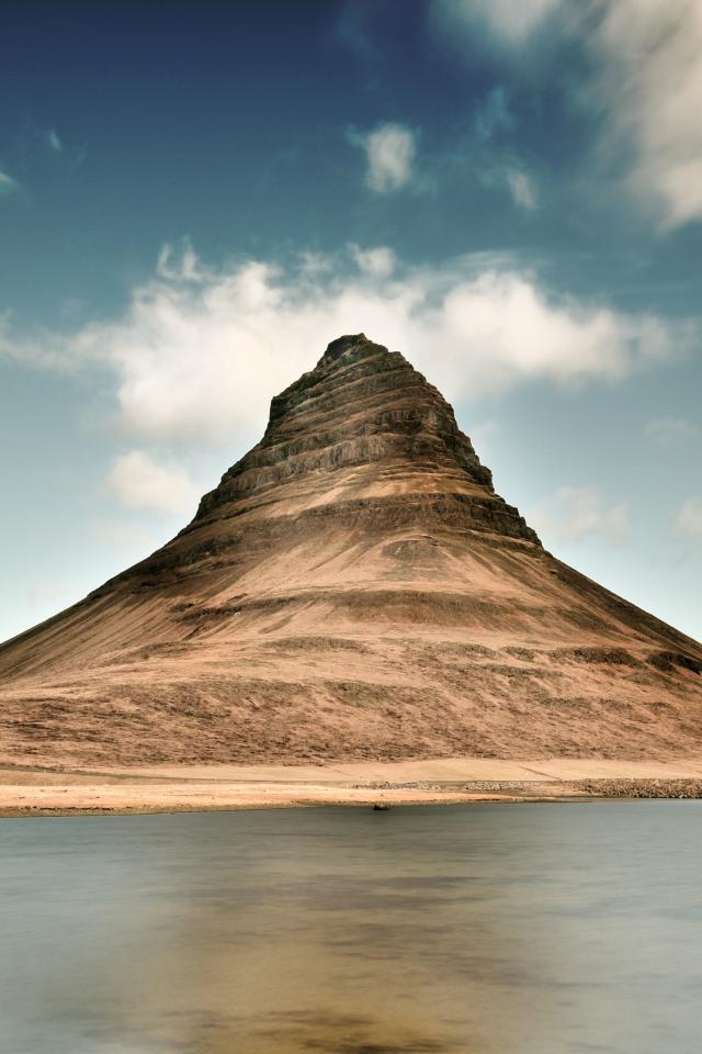 Обои Вид на гору Киркьюфетль у озера, Исландия