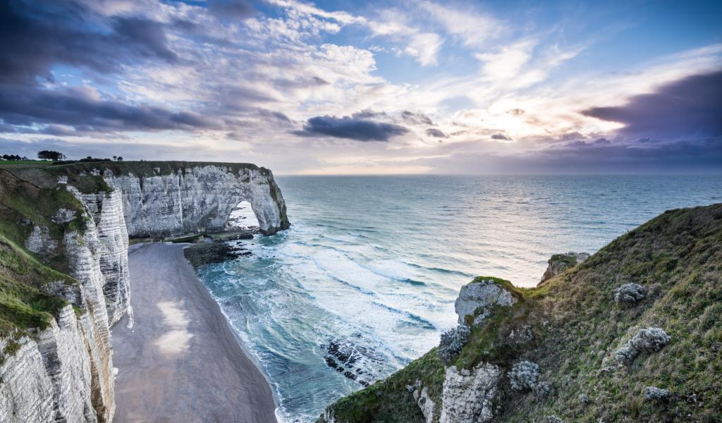 Обои Крутые скалы на берегу океана на закате