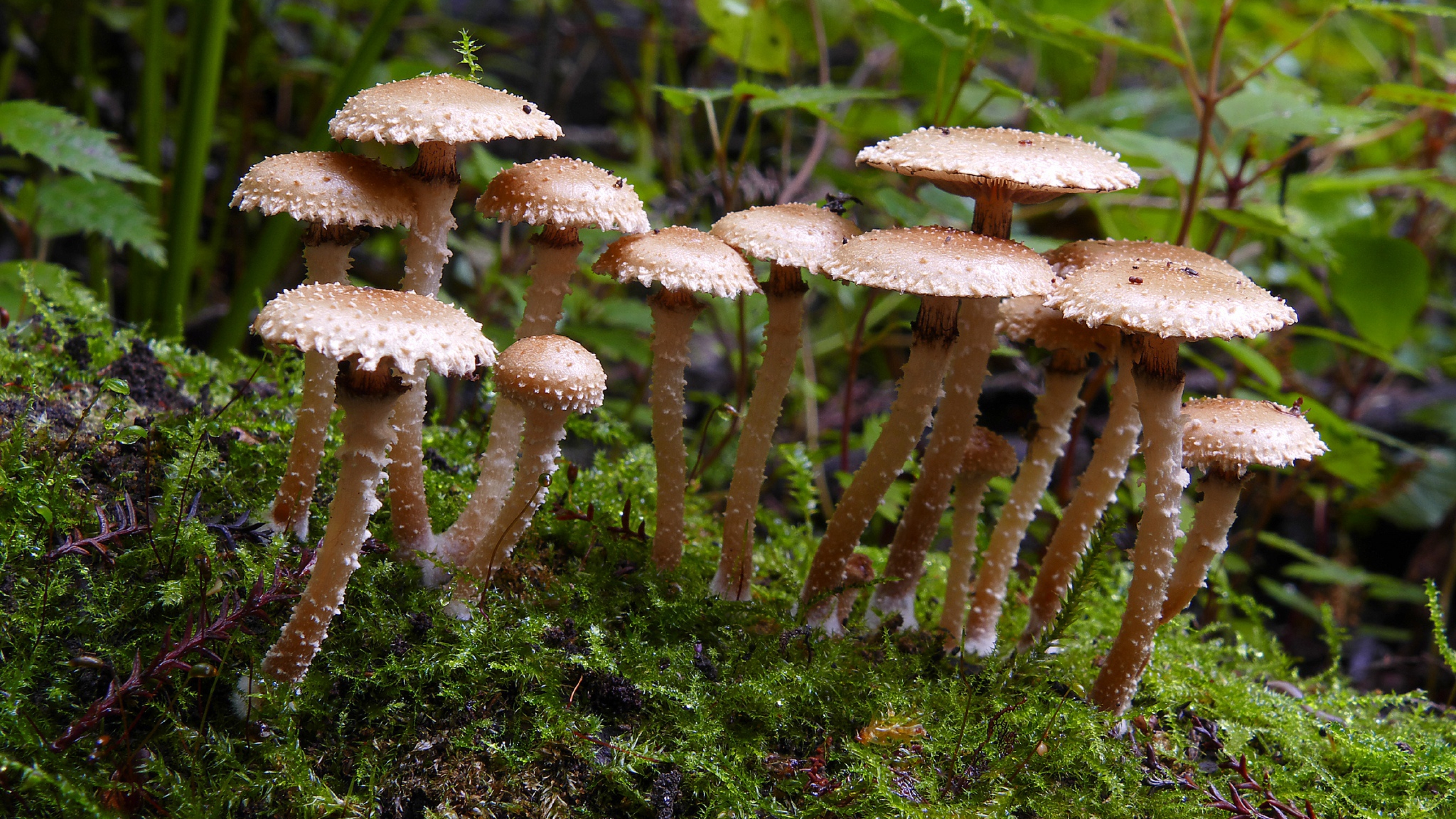 Обои Много маленьких грибов в лесу