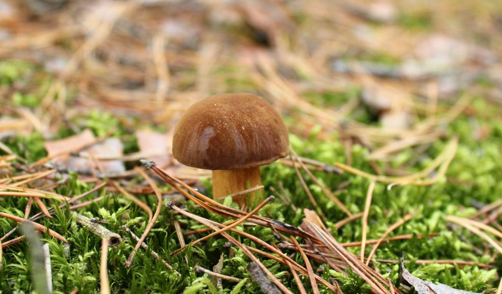Обои Гриб растет на покрытой зеленым мхом траве