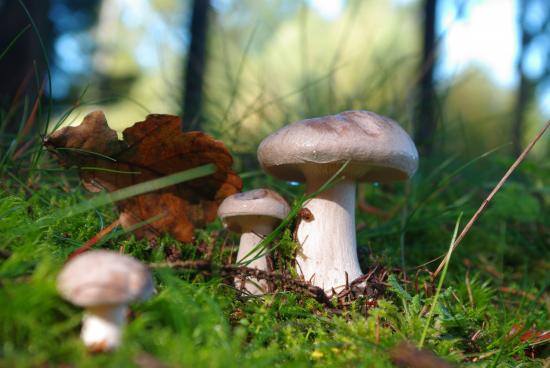 Обои Красивые лесные грибы на покрытой мхом земле