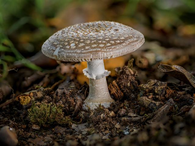 Обои Гриб мухомор в рыхлой земле в лесу
