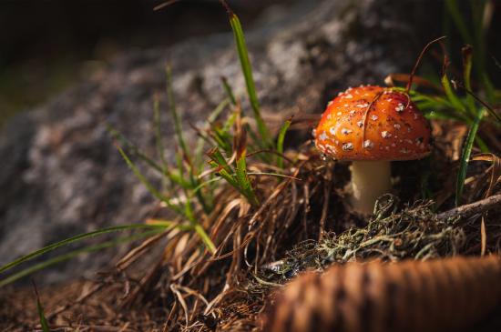 Обои Маленький мухомор в лесу