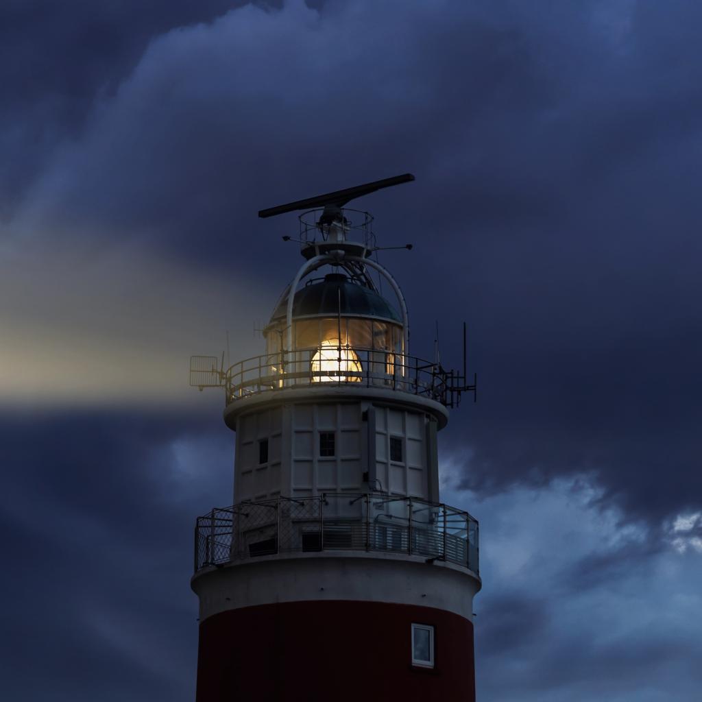 Обои Грозовое небо над включенным маяком ночью