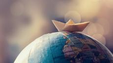 Обои Бумажный кораблик с зеленым листом клевера