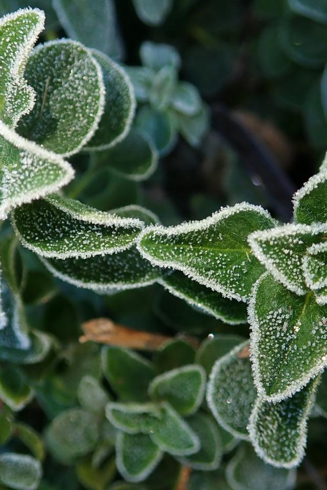 Обои Покрытые инеем зеленые растения