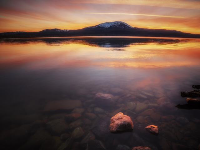 Обои Каменистое дно прозрачного озера в горах