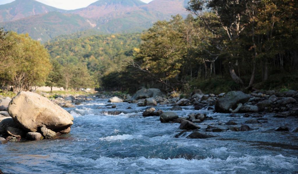Обои Бушующая горная река бежит по камням