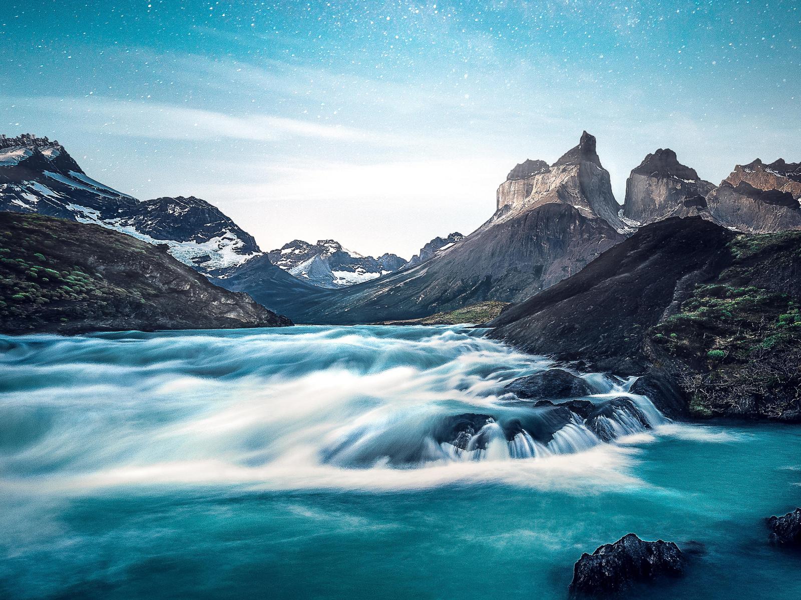 Обои Быстрая горная река на фоне гор